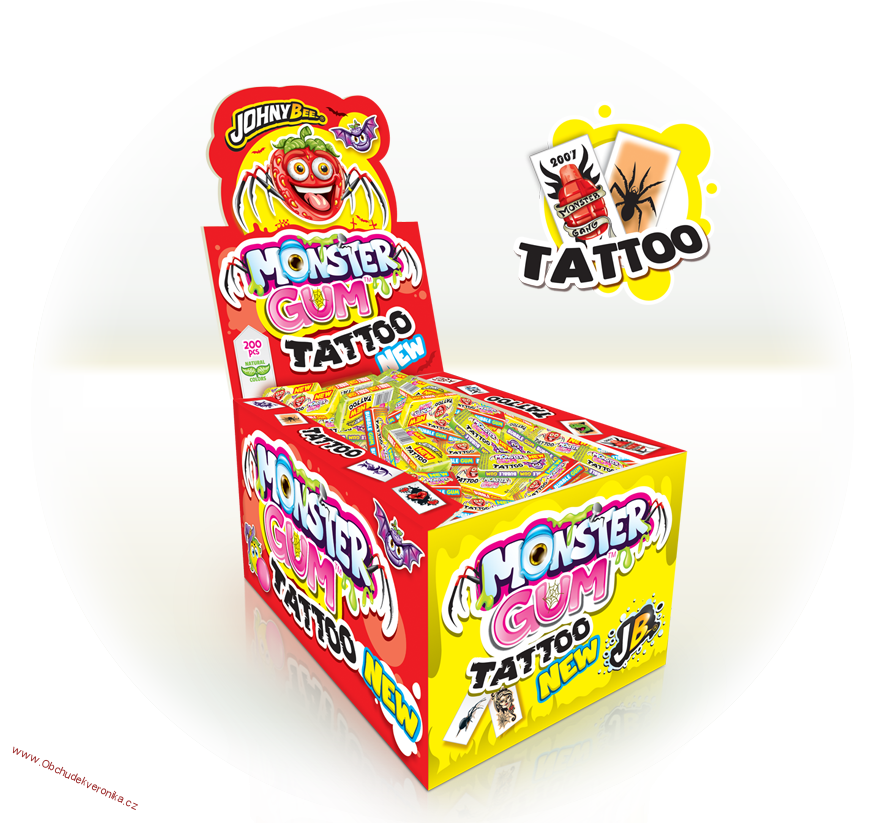 Johny Bee Monster gum + tatto 5g x 200ksSkladem380 Kč/ 380339 Kč bez DPH