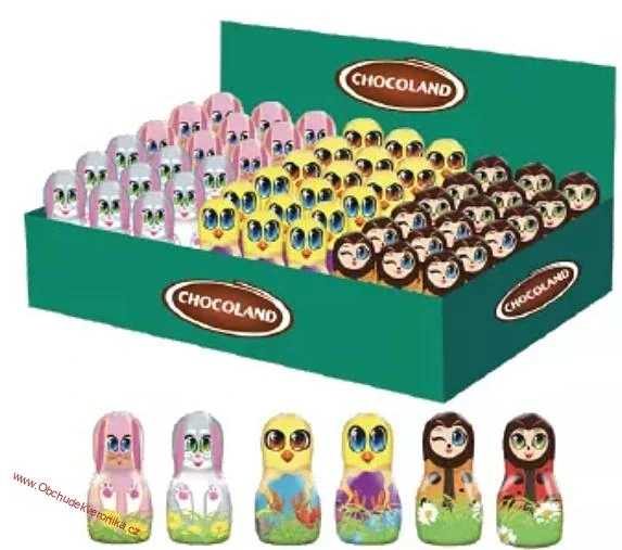 Velikonoční figurka dutá figurka mix motiv z mléčné čokolády, výška 5,5cm.