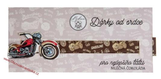 Čokoláda pro tatínka s motorkou může být skvělým dárkem, pokud váš tatínek má rád motorky a zároveň miluje čokoládu. Čokoláda pro tatínka je vyrobena z prvotřídního kakaa a dalších vybraných surovin. Používají se pouze ty nejlepší přísady, aby se zajistila výjimečná chuť a kvalita.