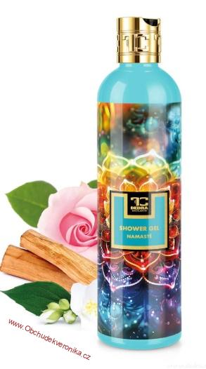 NAMASTÉ – luxusní sprchový gel s glycerinem a Aloe vera. Jemně čistí, hydratuje a zanechává pokožku hebkou. Bez SLS, SLES a parabenů. Meditační vůně růží, jasmínu, citrusů a cedrového dřeva. Balení 320 ml.