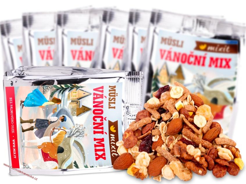 Tradiční chuť a vůně Vánoc podle Mixit se vrátila i letos! Ochutnejte náš historicky nejprodávanější mix - voňavou směs s ovocem, čokoládou, oříšky a speciální kombinací omamného koření. Vánoční mix udělá z každé snídaně svátek, potěší i na adventním stole či pod stromečkem.